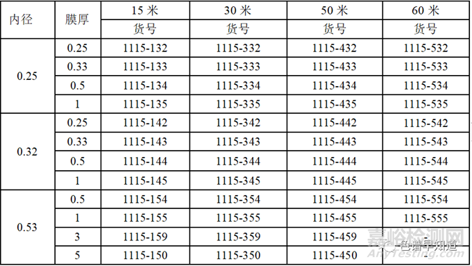 柱長(zhǎng):30m 內(nèi)徑:0.32mm 膜厚:0.33μm