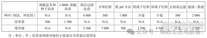 表2 2000L動物細(xì)胞懸浮培養(yǎng)制備單克隆抗體常溫注射用水耗量(每批)