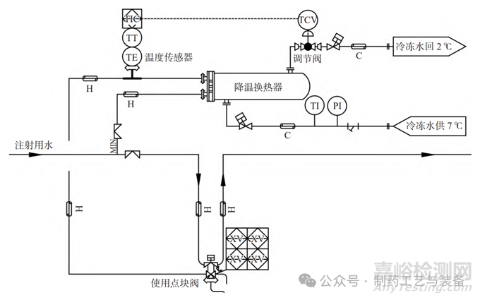 圖2 注射用水旁路冷點(diǎn)系統(tǒng)圖(冷水不回流)