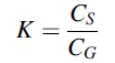 Cs:組分在氣相中的濃度, Cg:組分在液相中的濃度 另外定義 β 為相比,意義如下: