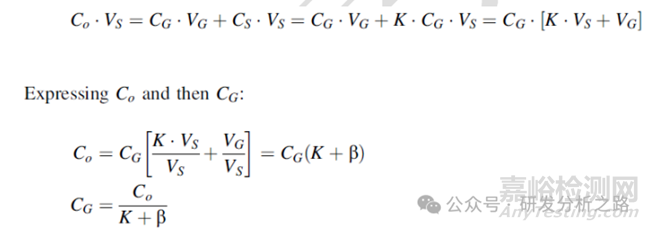 樣品開始溶解在原始溶液(尚未進行氣液分配)時的濃度為 C0,那么有公式如下: