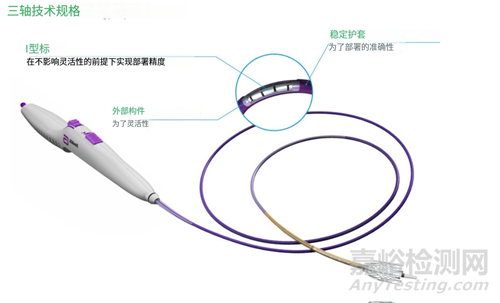 3.三軸輸送系統(tǒng):藍(lán)色外部穩(wěn)定軸設(shè)計(jì)用于控制展開(kāi)力并便于精確放置,中間軸縮回以展開(kāi)支架