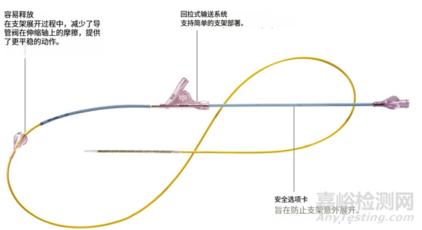 4.用于簡(jiǎn)單支架部署的回拉輸送系統(tǒng):回位輸送系統(tǒng)可實(shí)現(xiàn)支架的簡(jiǎn)單部署,而易于釋放可減輕導(dǎo)管閥在支架部署過(guò)程中對(duì)可伸縮軸的摩擦,從而提供更平穩(wěn)的操作。