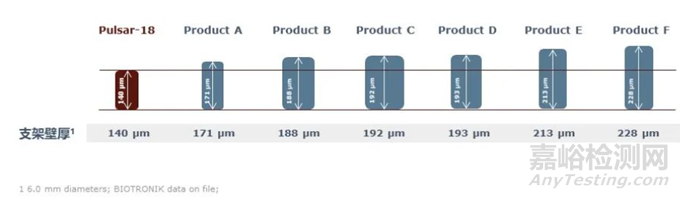 1. 降低剛性,具有出色柔順性的支架薄壁支架設(shè)計(jì)是Pulsar-18最突出的設(shè)計(jì)特點(diǎn)之一,較薄的支架壁,與其他同類產(chǎn)品比,可以顯著降低支架剛性,支架植入后血管仍可最大化地保持其自有的彎曲特性并順應(yīng)血管的多軸向運(yùn)動(dòng)。