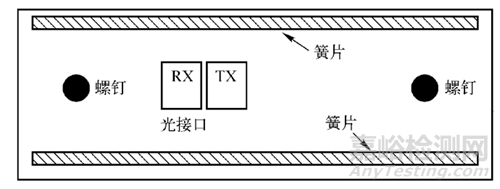 簧片與機(jī)框結(jié)構(gòu)接觸良好,形成良好的屏蔽, 只是兩旁沒(méi)有簧片, 但是由于有螺釘固定,縫隙的長(zhǎng)度也沒(méi)有超過(guò)1.5cm,扣板簧片示意圖如下所示: