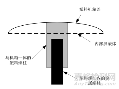 處理的措施為將螺釘改為塑料螺釘或者將金屬螺柱內(nèi)縮至屏蔽體以內(nèi),如下所示: