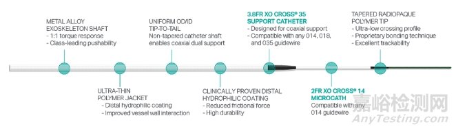 據(jù)該公司介紹,XO Cross 也已獲得 FDA 批準(zhǔn)以及歐盟 CE認(rèn)證,并且已經(jīng)安全、成功地用于治療挑戰(zhàn)性外周病變(包括但不限于經(jīng)對側(cè)股動脈入路、經(jīng)股動脈順行入路和經(jīng)足底動脈逆行入路的膝上和膝下慢性完全閉塞)。
