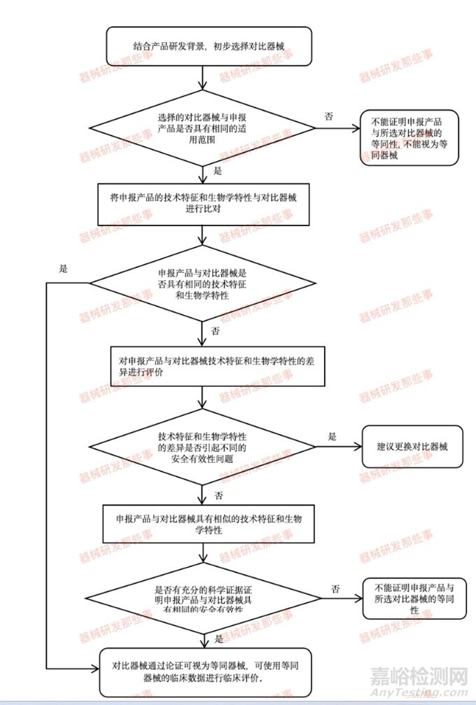 此外,導(dǎo)則還明確了對(duì)比器械應(yīng)在境內(nèi)獲準(zhǔn)注冊(cè)的要求,這是基于業(yè)界意見(jiàn)和考慮后的重要調(diào)整。這一要求有助于確保對(duì)比器械的可靠性和安全性,并簡(jiǎn)化等同論證過(guò)程。