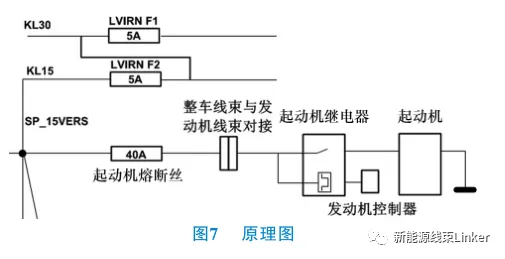 此處起動機的電源來自于KL15,而控制起動機工作的為發(fā)動機控制器,根據(jù)此處設(shè)計狀態(tài)可以確認(rèn),在碰撞完畢,KL15斷開的情況下,此回路不應(yīng)存在有電流的可能