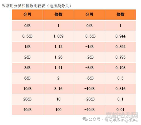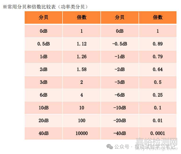 以上列舉了dB(分貝)概念在振動試驗中出現(xiàn)的情亂,有可能有遺漏。讀完全文是不是覺得dB沒有那么難了,只是倍數(shù)的另外一種表達(dá)方式而已,重點理解第一種情況。最后,用兩張表格即分貝和倍數(shù)的關(guān)系(振動試驗常用值、兩種情況)來結(jié)束全文。