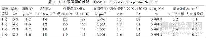 1.1 隔膜性能測試