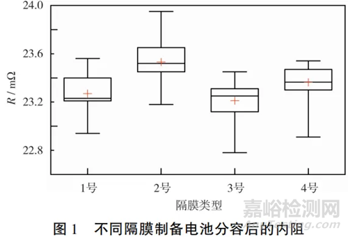 2.2 對電池分容后內(nèi)阻的影響
