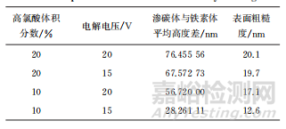 表 1 不同高氯酸體積分?jǐn)?shù)電解液和電解電壓下電解 拋光后珠光體的表面粗糙度
