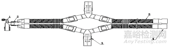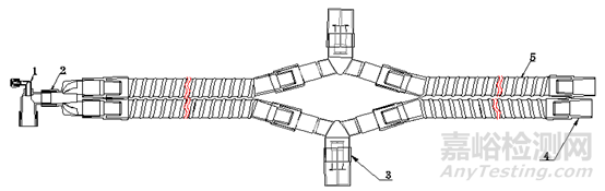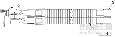 1-轉換接頭;2-Y形件;3-機器端接頭;4-加強筋管路