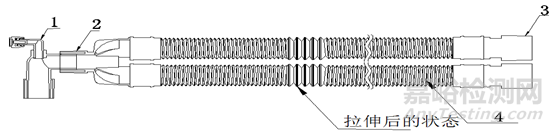 1-轉換接頭;2-Y形件;3-機器端接頭;4-可伸縮管路