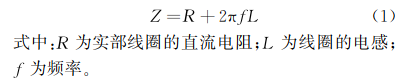 線圈可以由電抗、電容和電阻串聯(lián)的電路表示,通常忽視線匝間分布的電容。線圈的復(fù)阻抗Z的表示方法如式(1)所示。