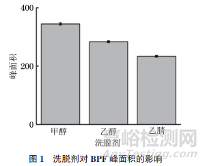 由圖1可知,以甲醇作洗脫劑時(shí),BPF的峰面積較大,因此試驗(yàn)選擇的洗脫劑為甲醇。