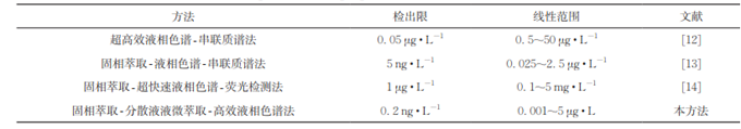 將該方法所得的線性參數(shù)以及檢出限同文獻(xiàn)方法的進(jìn)行比對(duì),結(jié)果見表1。