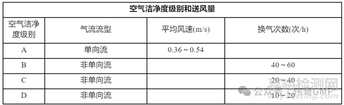 D級潔凈區(qū)域換氣次數(shù):6~20次/小時。