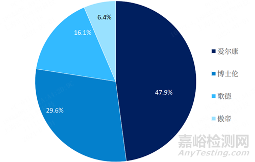 根據(jù)中國公立醫(yī)院公開可查詢的中標數(shù)據(jù)顯示, 愛爾康的 Constellation 系列產(chǎn)品總銷售額市占率最高, 達到了47.9%, 占據(jù)市場優(yōu)勢地位;博士倫排名第二, 銷售額市占率達到了29.6%;歌德排名第三, 銷售額市占率達到了16.1%;傲帝排名第四, 銷售額市占率達到6.4%。