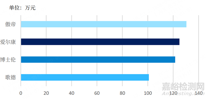 目前國內(nèi)超乳玻切一體機均為進口品牌,平均單價接近。傲帝產(chǎn)品的平均價格為130.4萬元,位居中標產(chǎn)品平均價格首位;愛爾康產(chǎn)品的平均價格為124.9萬元,位居第二位;博士倫的系列中標產(chǎn)品的平均價格為121.6萬元, 位居第三位;歌德的系列中標產(chǎn)品的平均價格為100.9萬, 位居第四位。