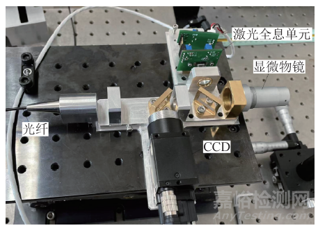 光學顯微測頭由激光全息測量系統(tǒng)和光學顯微成像系統(tǒng)兩部分組成,前者用于實現(xiàn)被測樣品微小位移的測量,后者用于對測量過程進行監(jiān)測,以實現(xiàn)被測樣品表面結構的非接觸瞄準與測量。