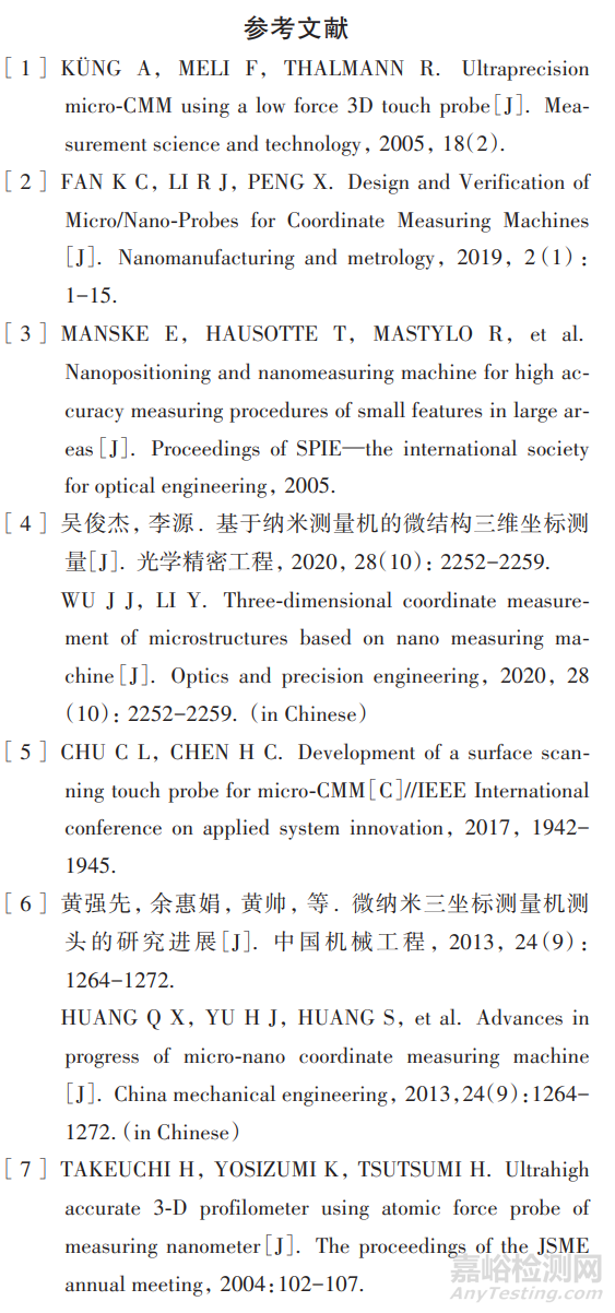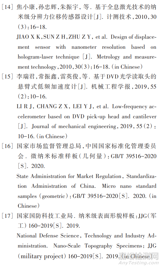 臺階高度樣板和一維線間隔樣板測量實驗的結果表明:光學顯微測頭可以應用于納米三維測量機,實現(xiàn)微納米表面形貌樣板的快速定位和微小位移測量。通過用納米測量機的激光干涉儀對光學顯微測頭的位移進行校準,可將測頭的位移測量結果溯源到穩(wěn)頻激光的波長。實驗過程也證明:光學顯微測頭具有掃描速度快、測量分辨力高和抗干擾能力強等優(yōu)點,適用于納米表面形貌的非接觸測量。