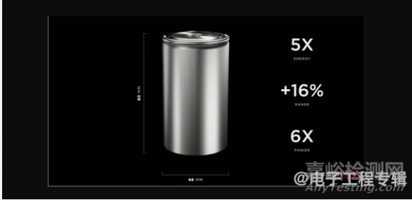 特斯拉4680電池即直徑為46mm,長度為80mm的圓柱形電池,引入無極耳設計和干法電極技術,使得電池在能量密度、功率輸出和成本方面都有顯著提升。電極制成工藝采用干電池并引入硅基負極材料,高鎳正極和硅基負極的全新體系使得4680電池具有更高的質(zhì)量能量密度,預計電池能量能提升5倍,續(xù)航里程提升16%,功率提升6倍。