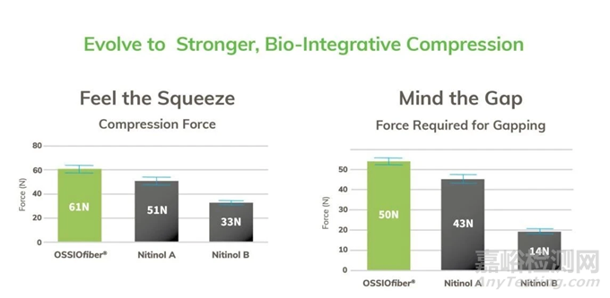 OSSIOfiber具有優(yōu)異的穩(wěn)定性和固定性,比許多鎳鈦諾門型釘更堅(jiān)固、壓縮性能更好。