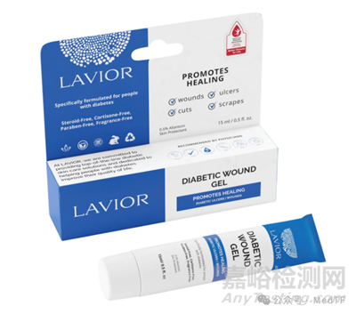 Lavior Diabetic Wound Gel是一款新型用于糖尿病的水凝膠,不僅可以保護(hù)DFU免受進(jìn)一步傷害,還可以舒緩干燥、開裂的下肢皮膚。其內(nèi)含有0.5%的活性成分尿囊素,可以為傷口愈合和皮膚再生提供最佳環(huán)境。
