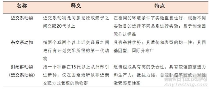 表2 常見實驗動物品系匯總表