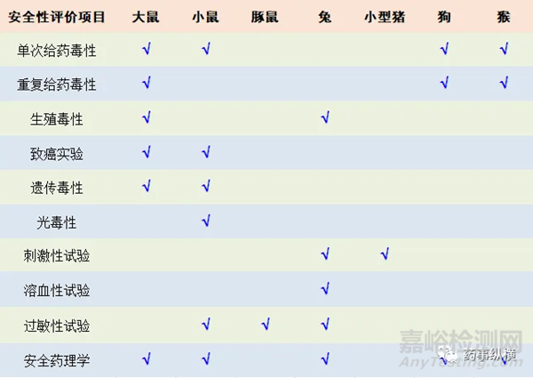 (3)創(chuàng)新性藥物應選用兩種或兩種以上的動物,其中一種為嚙齒類動物;另一種為非嚙齒類動物(如犬、小型豬或猴等)。其他藥物,可選用一種動物,建議首選非嚙齒類動物。