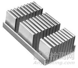(2)平板型鰭片做橫切將平板鰭片切成多個短的部分,這樣雖然會減少散熱片面,但是卻增加了熱傳導系數(shù),同時也會增加壓。當風向為不定方向時,此種設(shè)計較為適當。(如摩托車上的散熱片)