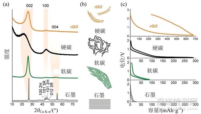 圖2 石墨烯、硬炭、軟炭和石墨示意圖