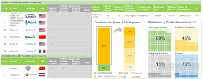 脈沖場消融市場目前多達超過50種脈沖場消融設備的存在。其中,大約90%的設備將消融導管作為其產(chǎn)品提供的一部分。此外,有近40種脈沖場消融設備正處于開發(fā)的不同階段,具備開發(fā)和商業(yè)化脈沖場消融設備所需的專業(yè)知識。目前,在這個行業(yè)中從事的脈沖場消融公司中,超過40%是小公司,員工少于50人。從地理分布上看,超過50%的脈沖場消融公司總部設在北美。