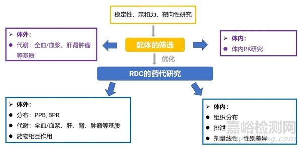 RDC的臨床前藥代研究包括體外分布、代謝和藥物相互作用研究,體內(nèi)PK線性、性別差異等,以及組織分布和排泄實驗等研究內(nèi)容(圖2)。