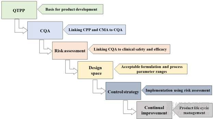 圖1 產(chǎn)品開發(fā)中QbD范例的順序和元素。