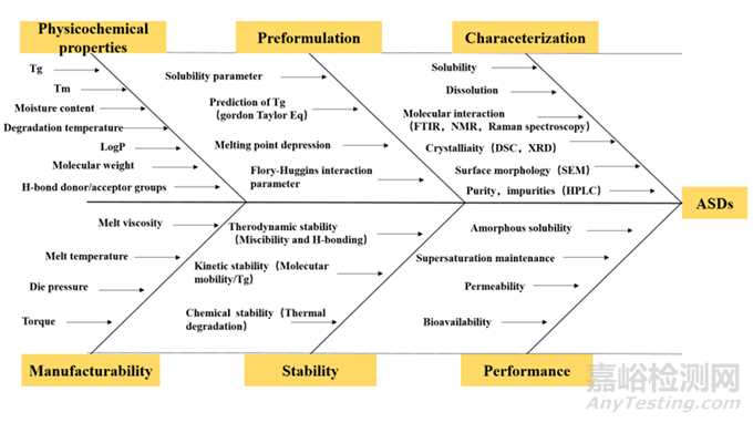 CQA一般可以借助先前的產(chǎn)品或工藝經(jīng)驗(yàn)和文獻(xiàn)報(bào)告來確定,HME生產(chǎn)的ASD最重要的CQA包括殘留結(jié)晶度、雜質(zhì)、含量測定、溶出度和含水量。