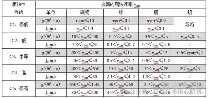表5 不同金屬暴露第一年的腐蝕速率進行環(huán)境腐蝕性分類