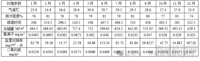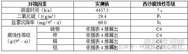 綜合潤濕時間、二氧化硫嚴酷程度等級和氯化物嚴酷等級,由于二氧化硫嚴酷等級低,整個綜合金屬材料腐蝕性等級為C4級。
