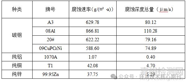 表8 基礎(chǔ)金屬材料戶外暴露1年腐蝕速率及腐蝕深度結(jié)果表