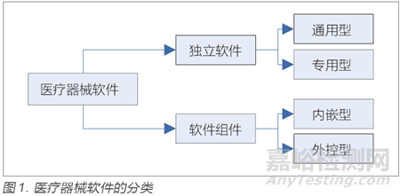 醫(yī)療器械軟件包括兩大類,一類是本身就屬于醫(yī)療器械的軟件,即醫(yī)療器械獨立軟件,另一類是醫(yī)療器械內(nèi)包含的軟件,即醫(yī)療器械軟件組件,見圖1。