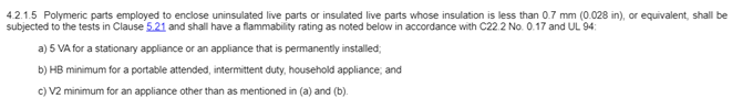 b. 便攜式,有人照看,間歇性工作的家用器具的外殼至少要HB級(jí)別;
