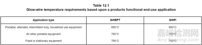 如果HWI值不滿足UL 1017, table 4的要求,便攜式,有人照看,間歇性工作的家用器具可以通過(guò)650℃的GWEPT或GWFI測(cè)試來(lái)替代HWI值。其他類型器具也按照table 12.1來(lái)做對(duì)應(yīng)灼熱絲測(cè)試。