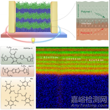 中國(guó)科學(xué)院化學(xué)研究所朱道本/狄重安研究團(tuán)隊(duì)、北京航空航天大學(xué)趙立東課題組及國(guó)內(nèi)外其他七個(gè)研究團(tuán)隊(duì)合作,提出并構(gòu)建了聚合物多周期異質(zhì)結(jié)(PMHJ)熱電材料。具體而言,就是利用兩種不同的聚合物構(gòu)建周期有序的納米結(jié)構(gòu),其中每種聚合物的厚度均小于10納米,兩種材料的界面約為2個(gè)分子層的厚度,并且界面層內(nèi)部呈現(xiàn)體相混合的特征。