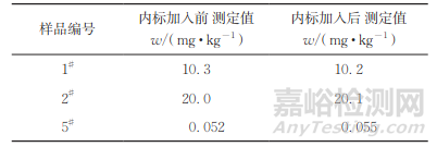 表5 內(nèi)標(biāo)加入前后樣品中總硅測(cè)定值的比較