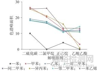 圖4 不同解吸溶劑時(shí)水樣的色譜峰面積