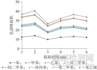 圖5 不同提取時(shí)間時(shí)水樣的色譜峰面積