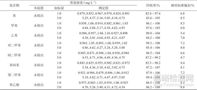 表2 地表水樣品加標(biāo)回收試驗(yàn)結(jié)果