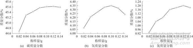 圖1 不同樣品稱量質(zhì)量對(duì)碳、氫、氮測(cè)量的影響